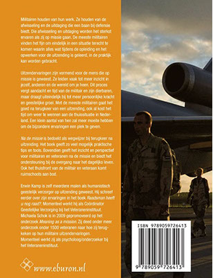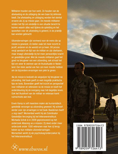‘Na de missie’ is bedoeld als wegwijzer bij terugkeer na uitzending. Het boek geeft zo veel mogelijk praktische tips en tools. Bovendien geeft het inzicht en perspectief voor militairen en veteranen na de missie en biedt het ondersteuning bij de overgang naar het dagelijks leven. Ook het thuisfront van de militair en veteraan komt ruimschoots aan bod.